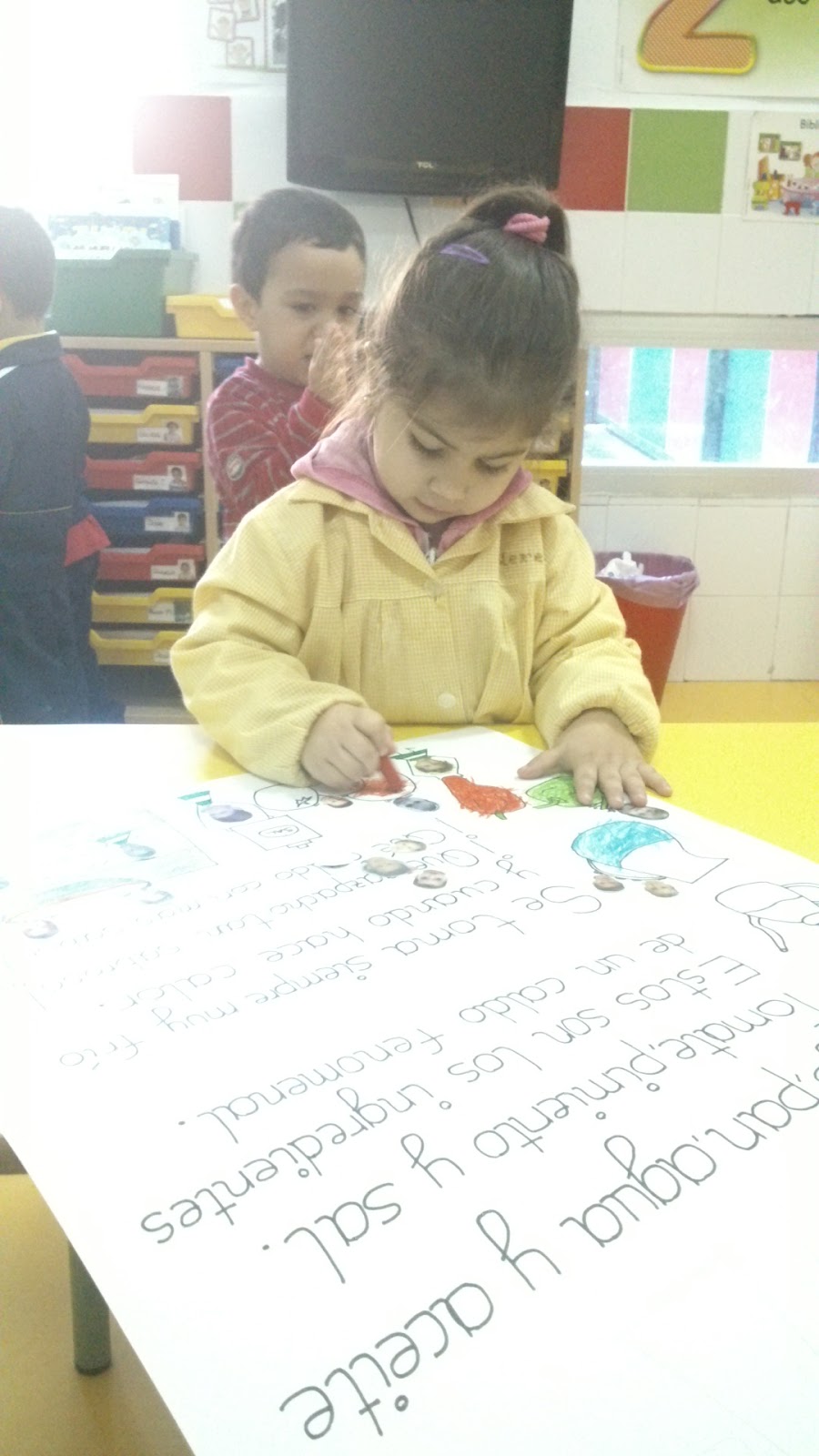 Aquí nos veis preparando nuestro mural. El gazpacho que rico y que fresquito está en verano.
